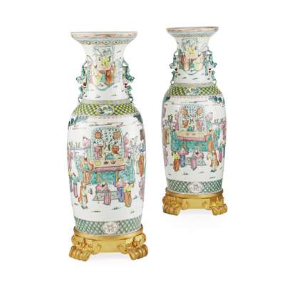PAIR OF ORMOLU-MOUNTED FAMILLE VERTE VASES
