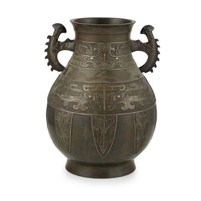 ARCHAISTIC SILVER-INLAID BRONZE VASE