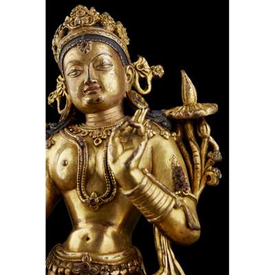 SINO-TIBETAN GILT BRONZE FIGURE OF A TARA
