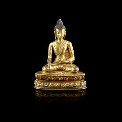 SINO-TIBETAN GILT BRONZE FIGURE OF BUDDHA SHAKYAMUNI