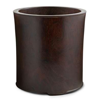 of cylindrical form, the base pierced with a central aperture, the wood of a reddish brown tone with attractive grain