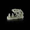 carved with two scholars engaged in conversation beside a gnarled pine tree, a deer nestled nearby, the jade of a pale green tone