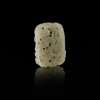 of rounded rectangular form, finely carved and pierced on both sides with a continuous design of a heron perched on a flowering prunus tree, the translucent stone of a pale greyish celadon tone