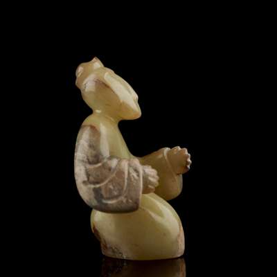 YELLOW JADE FIGURE OF A KNEELING COURT LADY