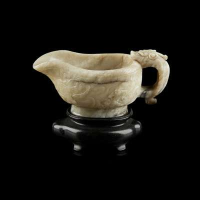 CARVED JADE ARCHAISTIC POURING VESSEL, YI