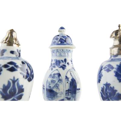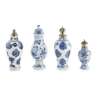 FOUR SMALL BLUE AND WHITE VASES AND COVERS