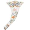 the horn painted in polychrome enamels with scrolling tendrils bearing composite flowerheads as botanical specimens, the tip decorated with a small cartouche featuring a traditional Chinese landscape
