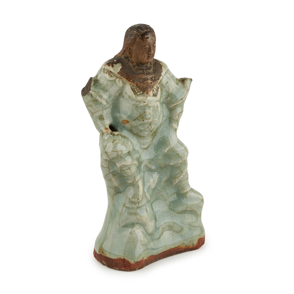 CELADON AND BISCUIT FIGURE OF XUAN WU