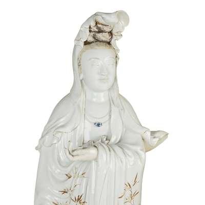 MASSIVE BLANC-DE-CHINE FIGURE OF GUANYIN