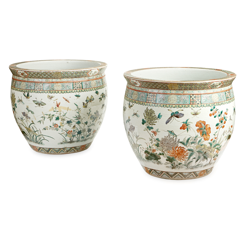 PAIR OF MASSIVE FAMILLE VERTE FISH BOWLS