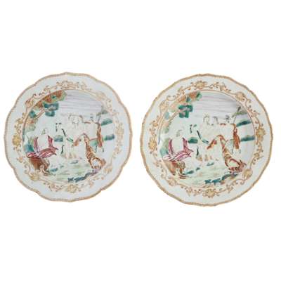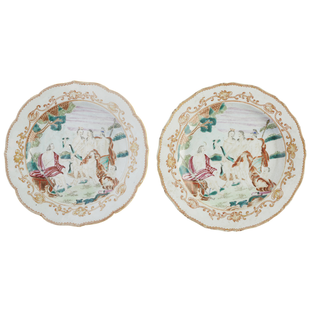 PAIR OF FAMILLE ROSE 'JUDGMENT OF PARIS' PLATES
