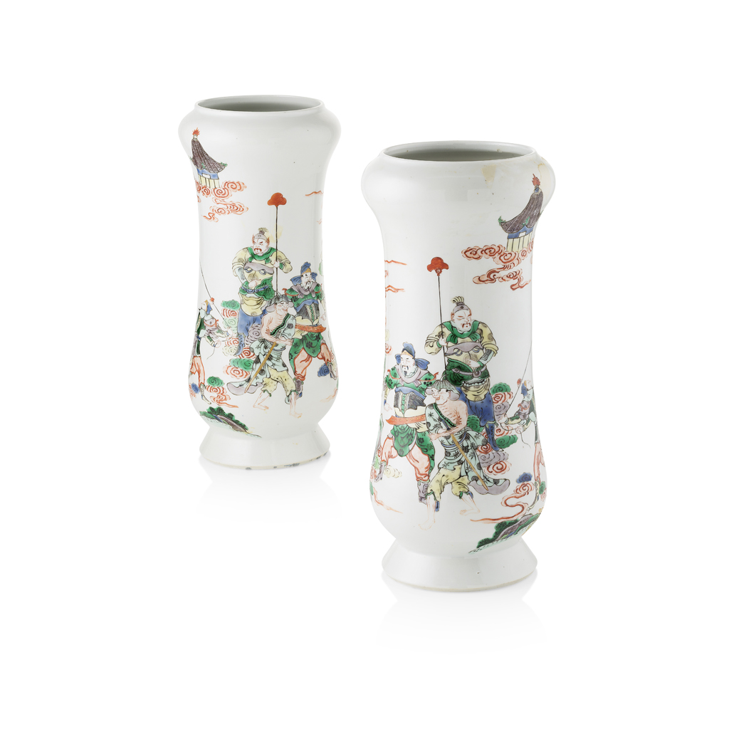 PAIR OF FAMILLE VERTE 'WATER MARGIN' VASES