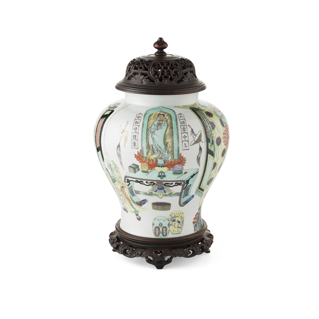 FAMILLE VERTE BALUSTER JAR AND COVER