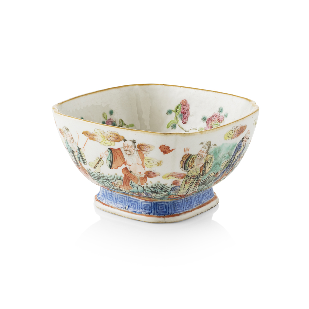 FAMILLE ROSE 'EIGHT IMMORTALS' FOOTED BOWL