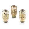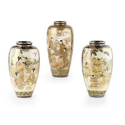 comprising: a pair of midnight-blue ground oviform vases, signed Yasui; and another midnight-blue ground ovoid vase, with Kinkozan mark to the base (3)