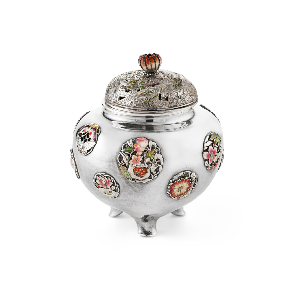 FINE SILVER AND ENAMELLED GLOBULAR KORO AND COVER