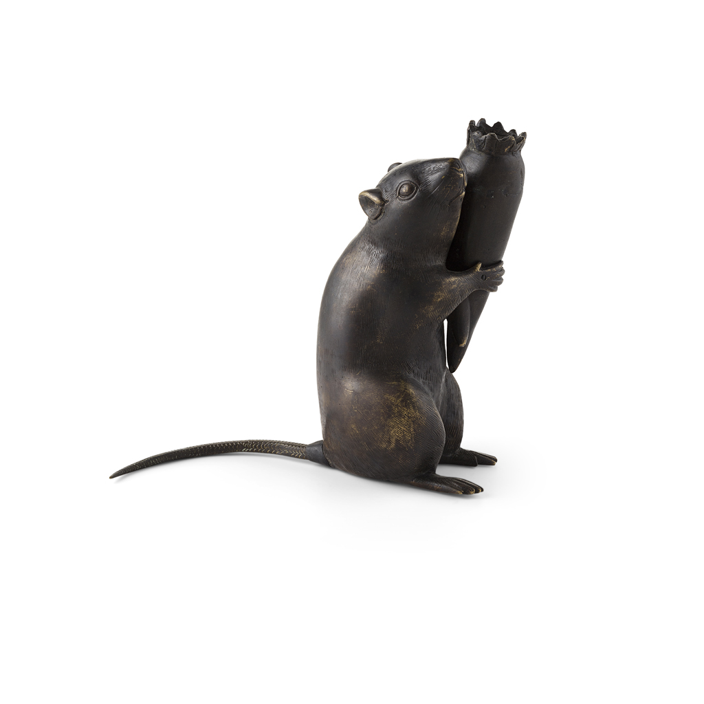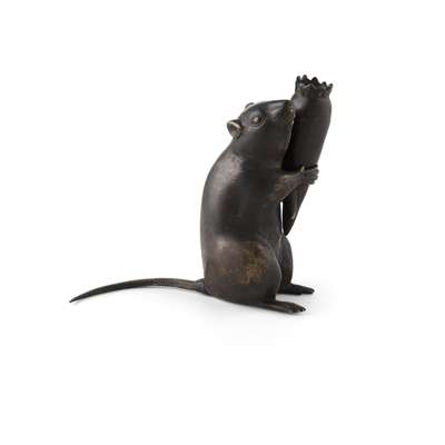 BRONZE OKIMONO OF A RAT HOLDING A RADISH