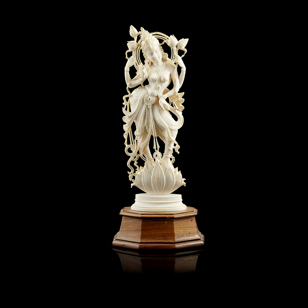 FINELY CARVED IVORY FIGURE OF LAKSHMI Y