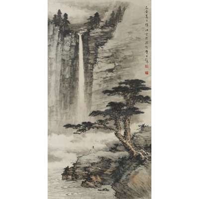 ink and colour on paper, inscribed 'Yi Mo Xia Ri Hui Han Xie Yu Bin Zhou Huang Jun Bi' (painted whilst dripping with sweat by Huang Junbi in Binzhou in yiyou year), with two seals of the artist 'Huang Jun Bi Yin' and 'Jun Wen', framed and glazed