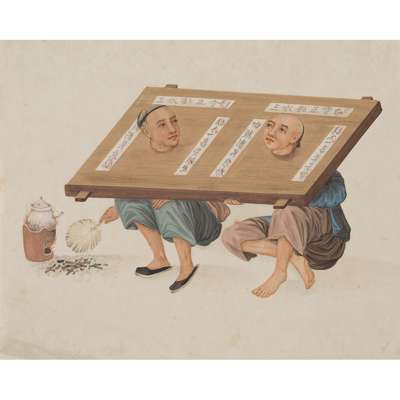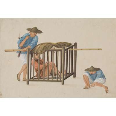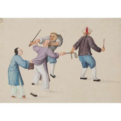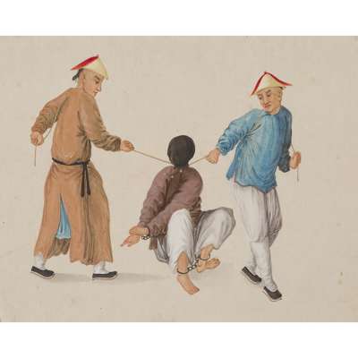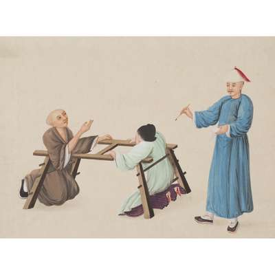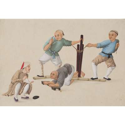 EIGHT PITH PAPER PAINTINGS DEPICTING PUNISHMENT AND TORTURE