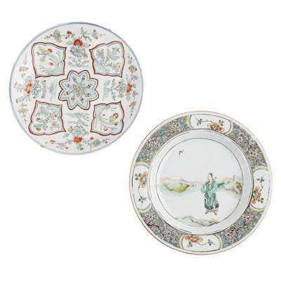 TWO FAMILLE VERTE DISHES