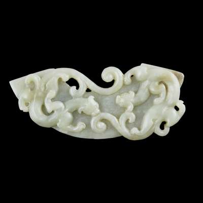 FINELY CARVED CELADON JADE RUYI SCEPTRE
