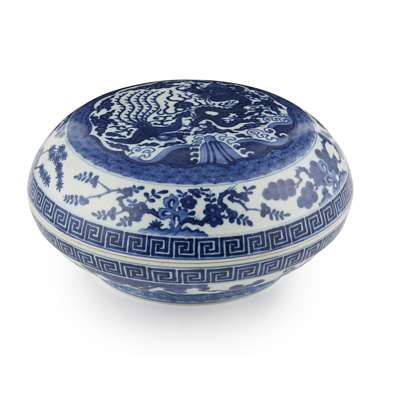 BLUE AND WHITE CIRCULAR BOX AND COVER