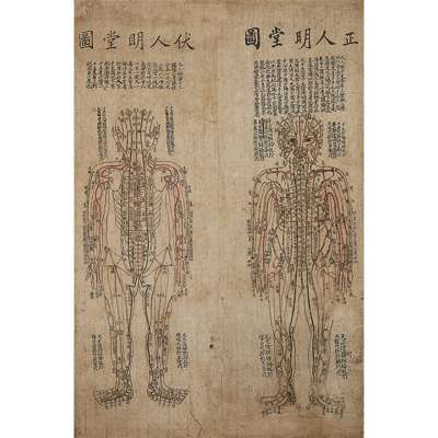 TWO PAINTED ACUPUNCTURE CHARTS, MING TANG TU