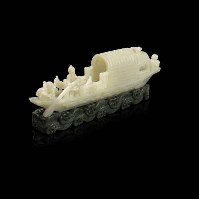 CARVED HIPPOPOTAMUS TOOTH MODEL OF A RAFT