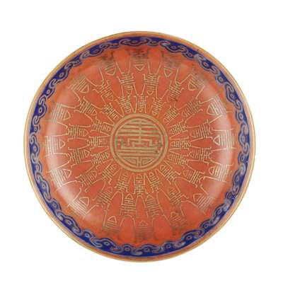 CORAL-RED GROUND 'SHOU' DISH