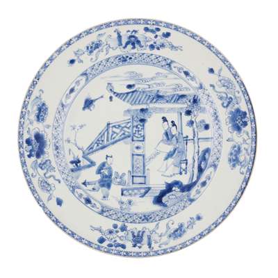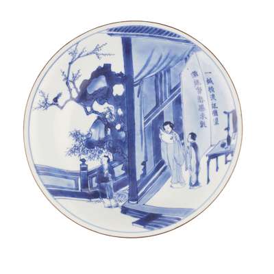 BLUE AND WHITE 'ROMANCE OF THE WESTERN CHAMBER' DISH