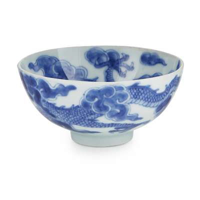 SMALL BLUE AND WHITE 'DRAGON' BOWL