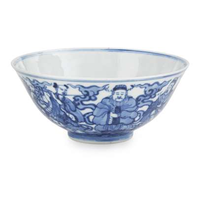 BLUE AND WHITE 'EIGHT IMMORTALS' BOWL