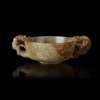 CELADON AND RUSSET JADE TWIN-HANDLE LIBATION CUP