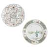the first painted with a sage holding a ruyi sceptre in a landscape, surrounded by four floral cartouches on a prunus ground; the second possibly made for the Islamic market, decorated with an eight-petalled flower surrounded by four lobed panels enclosing flowering sprays, with incised decorations (2)