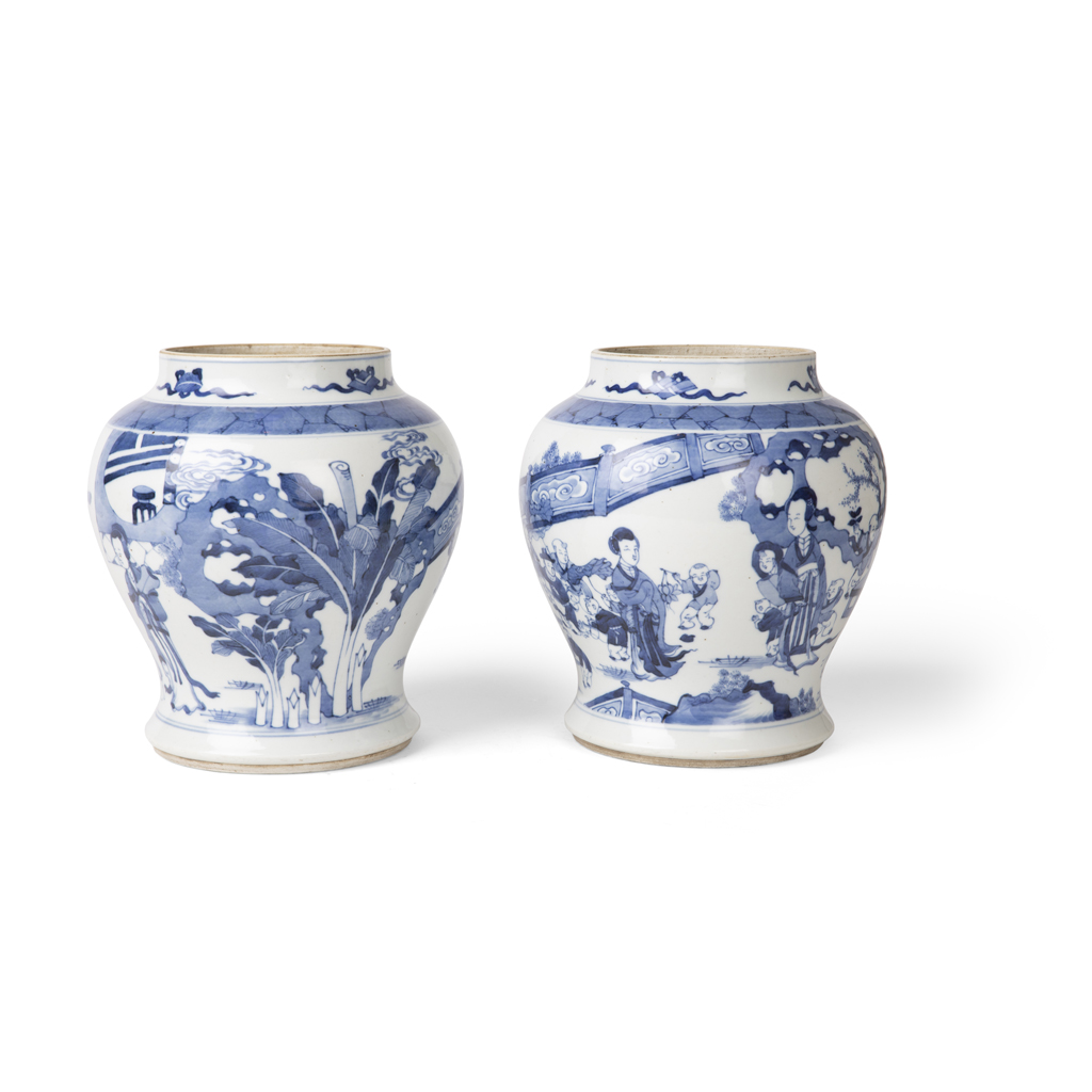 PAIR OF BLUE AND WHITE BALUSTER JARS