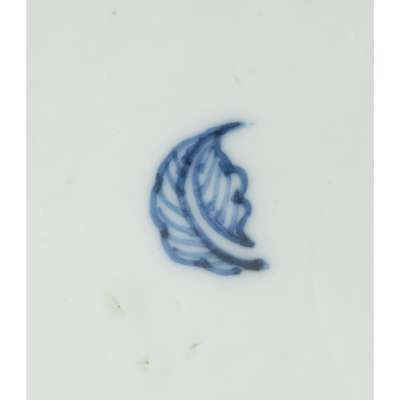 painted with winged mythical beasts striding above turbulent waves crashing against rocks emerging from the sea, the base with a leaf mark within double circles