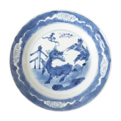 BLUE AND WHITE 'QILIN' DISH FROM THE COLLECTION OF AUGUSTUS THE STRONG (1670-1733)