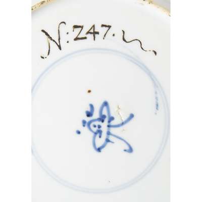 the mythical beast shown amidst garden rocks and a plantain plant, surrounded by swirling clouds at the rim, the base with an engraved Johanneum inventory mark 'N: Z47'