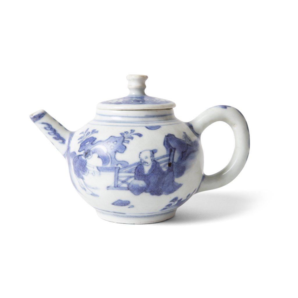 The base of the teapot bears a 'Hatcher Collection, Christie's June '84' label.