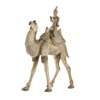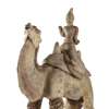 the two-humped camel modelled striding forward, the simple saddle modelled separately, the foreigner rider perched above wearing an exotic peaked cap, his right arm extended and his hands clenched as if holding on to reins