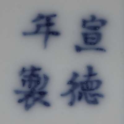 incised to the exterior of the cover and the sides of the box with flowering chrysanthemum branches issuing from pierced rock, covered overall with a white glaze, the base with a four-character Xuande reign mark in underglaze blue