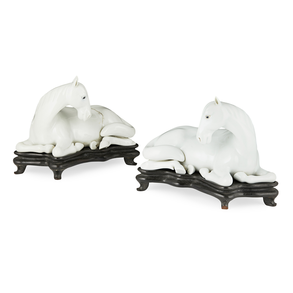 PAIR OF BLANC-DE-CHINE PORCELAIN HORSES
