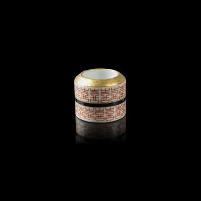 IRON-RED AND GILT PORCELAIN ARCHER'S RING
