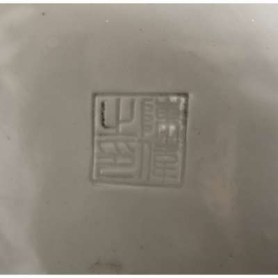 modelled seated with the hands resting on the raised right knee but hidden beneath the folds of the gown opening at the chest revealing the emaciated body, the right foot exposed, the unshaven face with a contemplative expression, the reverse with seal of Chen Wei