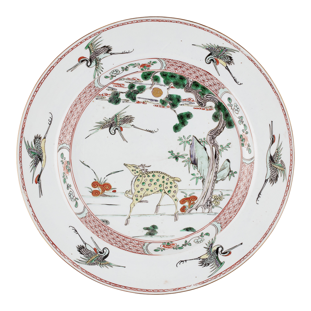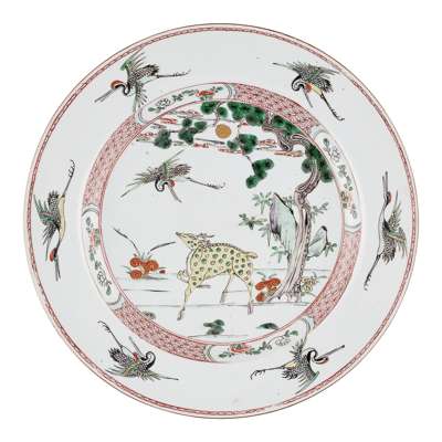 FAMILLE VERTE 'DEER AND CRANE' CHARGER