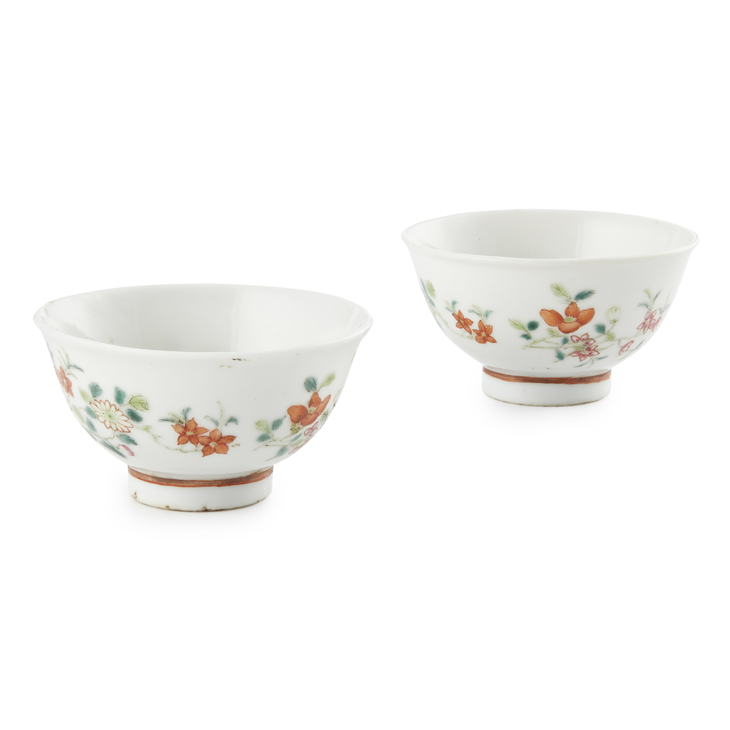 the exterior delicately painted with three leafy stems bearing poppy, begonia and aster florets, the base inscribed in iron-red with 'Yi Yuan Tang Xuan Zhi' (2)