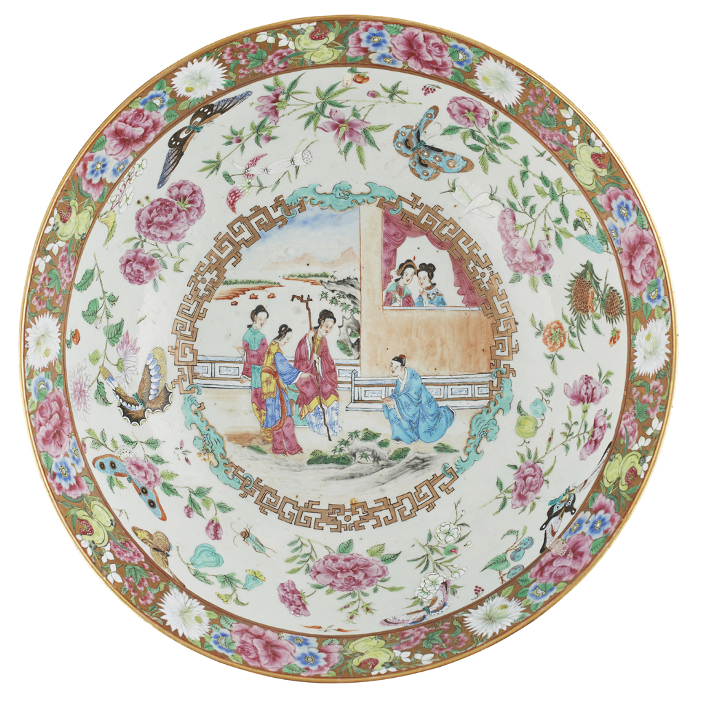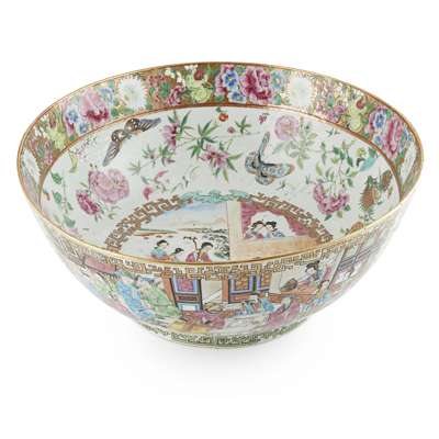 LARGE GILT DECORATED CANTON FAMILLE ROSE PUNCH BOWL