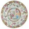 brightly enamelled and gilt, the exterior painted with a scene of courtiers engaged in a discussion on garden terraces, and with three scholar-officials playing go, interspersed with smaller figural panels, the interior decorated with a young scholar kneeling in front of an elderly lady