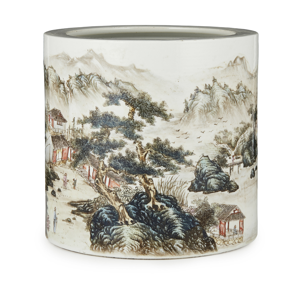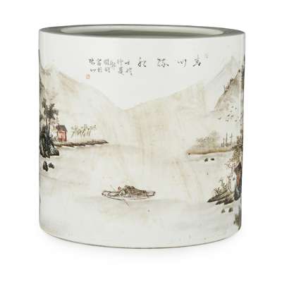 POLYCHROME ENAMELLED PORCELAIN BRUSH POT
